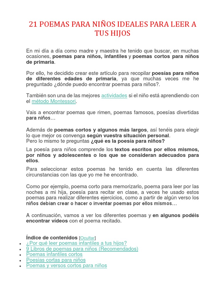 Por tus reproches y consejos. Por lo que encontrar poemas para dedicar a un niño podría convertirse en una tarea laboriosa de realizar. Del camino enseñado. Poemas especiales para el Día del Niño Caritas de cielo Leer más Caritas de cielo. Son prolongación y vida iluminan las mañanas. Sin duda en la red hay una gran infinidad de reflexiones literarias. Estás buscando poemas para el dia del niño. 7 poesias para sorprender. Pablo Neruda es el autor de este significativo poema especial para cualquier día.
